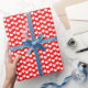 A wrapping paper with white hearts on a red background. You can choose the background colour of your preference.