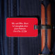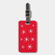 An outline drawing of white heart snowflakes outlined in red, is printed on a red background on personalised luggage tags. The contact info is easily customised on the template form, for the back.