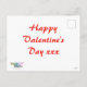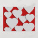 A contemporary Valentine's Day postcard with a pattern of large white hearts scattered over a romantic red background. The message on the back reads, 'Happy Valentine's Day' which can be changed to anything you like by clicking on the Customise button, or removed altogether if desired.