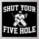 Hockey theme poster for the hockey goalie features a white silhouette hockey goalie with white text that reads Shut Your Five Hole.