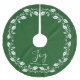 Accent your Christmas tree with this festive holiday tree skirt. The background is a dark green with a border of white holly leaves and the word "Joy" in elegant calligraphy. text. Custom text allows you to personalise with a name.