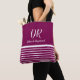 A stylish and modern design for a tote bag with white horizontal stripes on wine background, personalised with her name and initials (handwritten font style)
