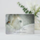 A christmas )or other occasion) thank you card with a serene photograph featuring a beautiful white horse with a little bird resting on his neck. A magical winter snowfall gives the image a wonderful mystical quality.