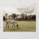 white horse in pasture grazing old style postcard