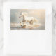 White Horse Running on the Beach Rectangular Sticker