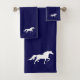 White Horse Silhouette on Navy Blue Bath Towel Set
