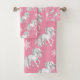 White Horses and Snowflakes Winter Pattern on Pink Bath Towel Set