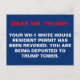 Front: Dear Mr. Trump: Your WH-1 White House residency permit has been revoked. You're being deported back to Trump Tower.