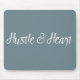 Elegant and modern typography mousepad with a simple and trendy text design of the words Hustle & Heart. Let everyone know about your hustle and heart with this elegant hand lettered design. Customise this motivational quotation mousepad by adding your own text and choosing your own background colour.