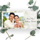 Send a message of thankfulness and gratitude after an engagement party, bridal shower or union with the elegant White Hydrangea Flower Wedding Thank You Photo Card. Customise it with the personal names of the bride and groom, specific marriage ceremony date and personal picture of the couple. This pretty custom botanical wedding thank you photocard features a close up floral photograph of a white hydrangea blossom.