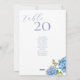 These chic blue and white wedding table number & guest seating cards feature a custom table number, editable guest seating list and floral hydrangea. A contemporary set of fonts plus a floral hydrangea design sets the scene for trendy, yet elegant event. This template can accommodate 2 more names max. The designs both front and back are identical for easy viewing from different angles.