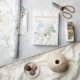 Beautiful white hydrangeas mixed with blue florals and soft greenery were used to create this lovely gift wrapping paper.
