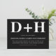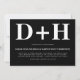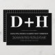 White initials bold typography black wedding invitation. The back includes a white geometric pattern on black.