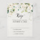Elegant white ivory floral wedding RSVP postcard featuring elegant bouquet of white , ivory, cream rose , and sage green eucalyptus leaves and elegant watercolor bouquet.