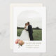 Modern and chic. This lovely wedding save the date card features a beautiful bouquet of voluptuous roses against white and ivory backgrounds. The design includes a couple photo in boho arch frame, contemporary set of fonts in olive green at the front and additional optional text at the back.