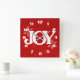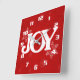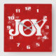 White JOY on Elegant Red Christmas Square Wall Clock