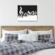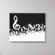 White Jumbled Musical Notes on Black Canvas Print