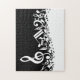 White Jumbled Musical Notes on Black Jigsaw Puzzle