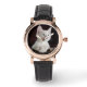 White kitten watch with photo template. Use the cute kitten picture or exchange it for one of your own cat, dog or any pet. Modern, square style watch with black or brown leather band. Or choose any other style.