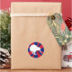 The white shape of a kiwi bird against a blue and red design. Red, white, and blue are the colours of New Zealand's flag.