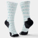 White knee-high socks with blue oval patterns, featuring black toes, heels, and tops. "L" and "R" labels mark the respective socks.