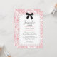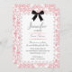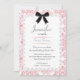 A sweet lace border frame and a charming vintage damask background pattern adorned with a darling little bow make up this Sweet 16 birthday party invitation.
