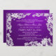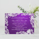 White floral lace design over a purple background personalise wedding invitation as preferred.