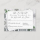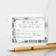 White Lace and Rose Leaves design features your text in traditional RSVP format displayed against a white backing. Background features the image of white lace. Green rose leaves are delicately positioned at the corners. Reverse features a white background with a single sepia rose displayed at bottom right corner.