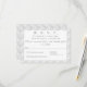 Design features the appearance of white lace as background to your information, which is displayed in a silver font against a white backing. Heading reads, "R.S.V.P.". The names of couple along with the city and state of wedding are displayed just below heading.