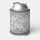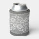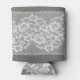 White lace fabric, grey background texture. can cooler