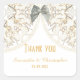 Chic pretty modern white lace filigree paper cutout style old antique vintage damask pattern with a silver ribbon bow graphic with a customisable plain white background, choose your background colour from a range of custom colours, to match your wedding stationery and other bridal essentials. This is an elegant minimalist yet sophisticated stylish feminine girly wedding thank you, that can easily be personalised with the bride and grooms names to the templates to create your own unique feminine girly custom thanks sticker favour for your classy special marriage or other occasions, events and celebrations. Visit the PERSONALIZED_ WEDDINGS STORE for matching coordinated wedding suite sets.