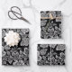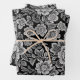 White Lace Florals on Black Wrapping Paper Sheet