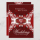 Red & White ribbon lace like design wedding invitation with centre monogram - suit for those having an alternative wedding or engagement - all the text, font style, including colours is fully customisable