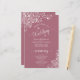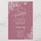These wedding programs are elegant and tasteful, while still being budget friendly. The design features an ornate white floral lace pattern on a rose blue or mauve pink coloured background. The typography features lacy script calligraphy, and there is room for details on the ceremony, the bridal party, and a short thank you.