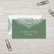 Beautiful white floral lace paisley mandala with geometric circles and swirls. Olev-green and white background.