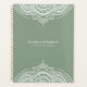 Beautiful white floral lace paisley mandala with geometric circles and swirls on sage green and reversed colours on the back of the card.