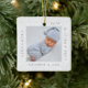 Minimal and elegant simple baby photo & birth Stats keepsake photo ornament. The design features an elegant faux white lace background. simple minimal design with a postage stage photo frame design to display your special baby photo. The Baby's Name, date, time, and birth stats are displayed in a simple modern design around the photo. Front and back is the same design.