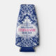 Elegant individual beverage cooler customisable template. White floral lace with customisable text. Blue background floral embellishment. If you need any help customising any of my designs, contact ArtOnWear designer. Free text formatting with live help available by request.