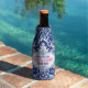 White Lace With Blue Background Pink Accent 3b Bottle Cooler