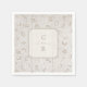 Elegant neutral white on white vintage floral lace and rustic wood grain design with couple's monogram, great wedding paper napkins for rustic wedding, country wedding party all year long, particularly in winter.