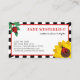 Cute mum calling card for your playdates with your name in big bold red letters, and your contact info in a fun black font. Add your children's names in a charming script. All against a white background framed by a red border and black and white stripes. A ladybug sits on a bright yellow sunflower in one corner, and another ladybug sits on a green twig of leaves in the opposite corner. The back features red and white polka dots.