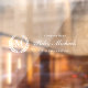 Neutral, elegant window cling with your initial in white inside an elegant classic laurel wreath next to your name and title in white. Show your name and title on the door or window with this window cling featuring an elegant, simple, classic and timeless design with your name in a script and initial and title and company name in an elegant classic font.