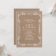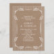 White leaves kraft paper wedding rehearsal dinner invitation that displays elegant stylish and classy leaves and stripes in bwhite on kraft look paper. This wedding design is a customisable template perfect for a wedding that takes place in autumn or fall. It is a modern and contemporary nature inspired design with a vintage touch.