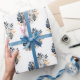White Leopard Blue Tropical Leaves Wrapping Paper