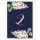 White lilac.Navy floral romantic wedding. Blue Table Number