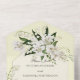 Your wedding day is a celebration of purity, grace, and the beauty of eternal love. This All-in-One wedding invitation embraces the elegance of white lilies and lily of the valley, set against a gentle pale yellow background, to create an invitation that exudes sophistication and charm. The All-in-One wedding invitations are both beautiful and practical by combining the wedding invitation with an easy to remove perforated RSVP postcard. They are also quick and easy to prepare for mailing. Simply address the invitation, fold the back flap and seal with the included clear stickers. Once your guests receive the pre-addressed invitation they simply tear off the perforated RSVP card and drop it in the mail. The addition of the QR code allows your guests to easily access your wedding website for information including reception details and dinner choices!