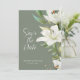 White Lilies on Smokey Green Background Save The Date