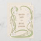 A wedding invitation with an art nouveau inspired design, featuring white lilies with green leaves, forming an organic flowing frame on a beige background. The text on both sides can be customised.