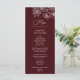 White Line Art Flowers Deep Burgundy Wedding Menu