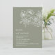 This elegant contemporary wedding invitation features white line art flowers and white script on a sage green background.